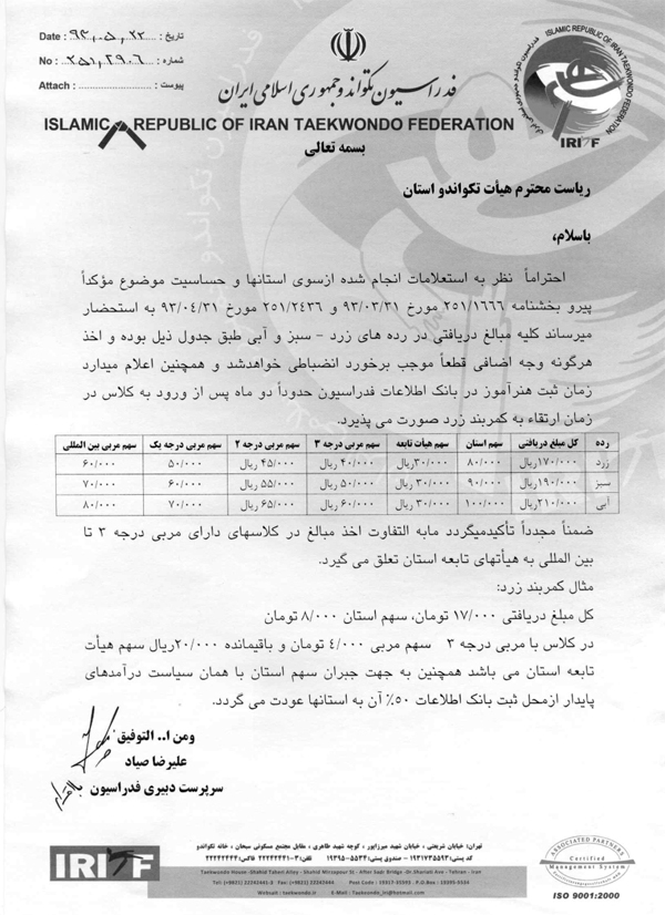 بخشنامه ها، فدراسیون تکواندو