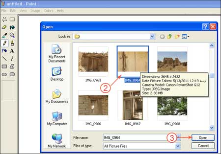 02 و 03) عکس مورد نظرتان را انتخاب و روی دکمه open کلیک کنید.